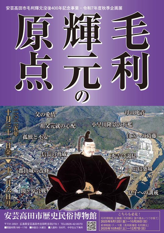 2025年は毛利輝元の没後400年にあたります。輝元は前半生を本市の郡山城で過ごしており、これを契機として毛利輝元をテーマとした企画展を開催します。