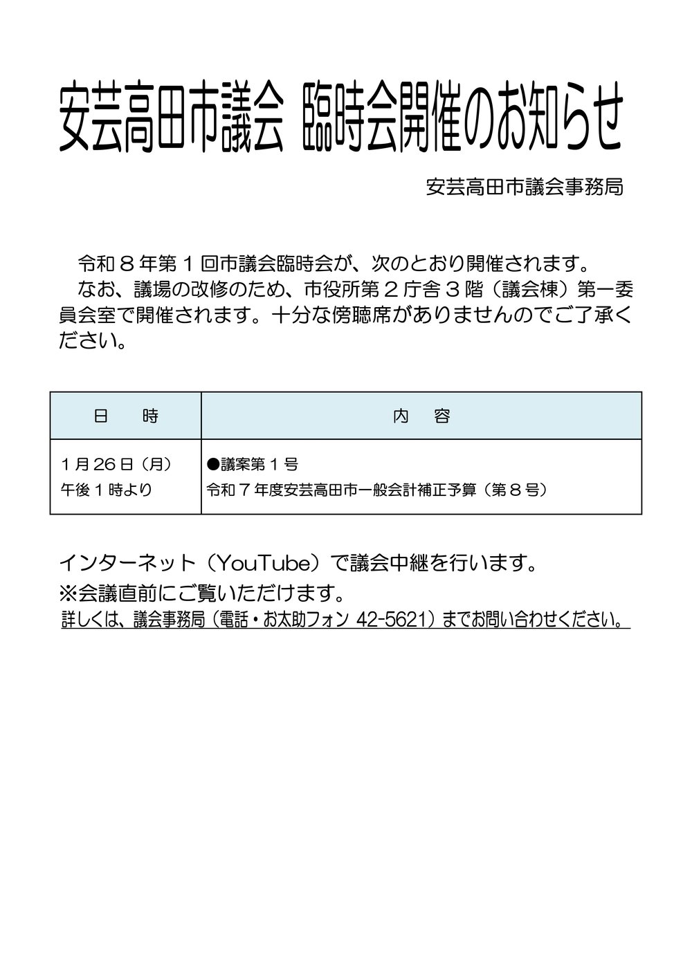 ホーム > 安芸高田市議会 > 本会議日程