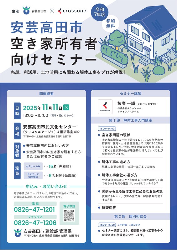 2025年11月11日に空き家所有者向けのセミナーを開催します。