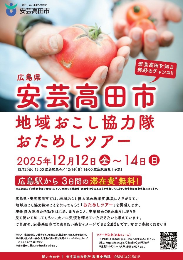 ※現地での移動費・宿泊費は安芸高田市が負担いたします。