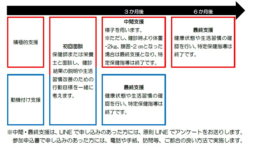 ・LINEでの申し込み:特定保健指導のご案内に同封の手順書のとおりLINEでお申し込みください。