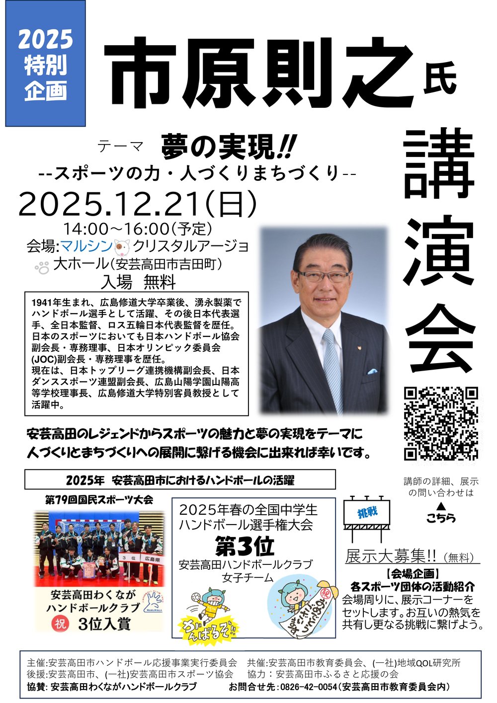 安芸高田のレジェンドである元JOC副会長市原則之氏が講演を行います。