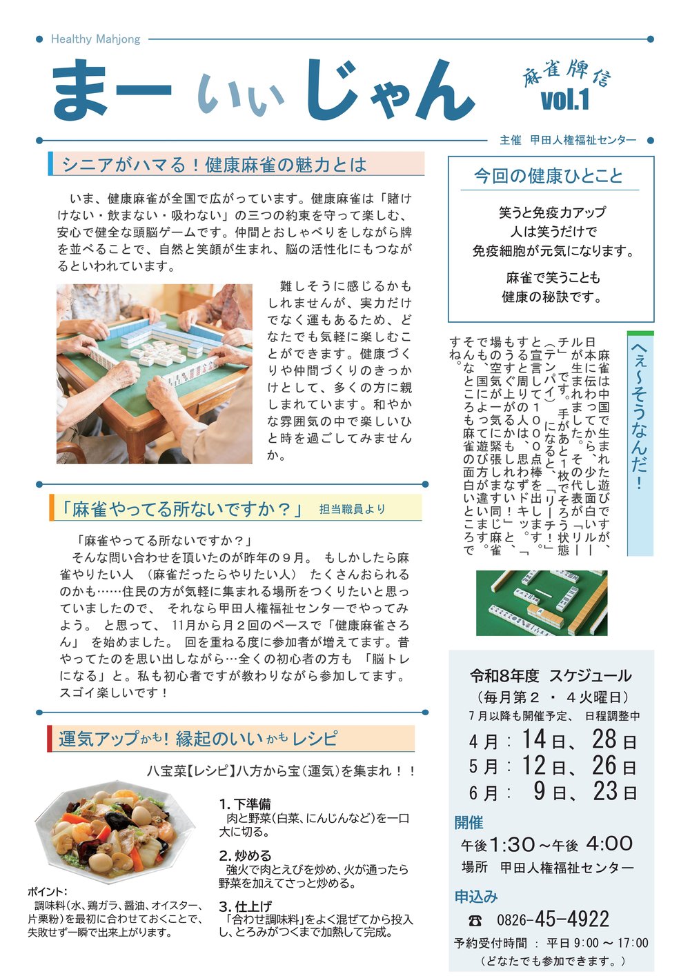今、全国的に注目を集めている「健康麻雀」をご存じですか?