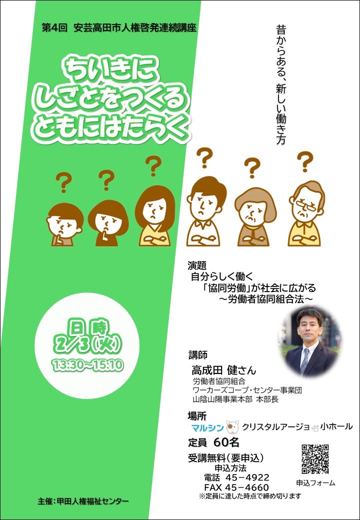 講師:高成田 健さん 労働者協同組合ワーカーズコープ・センター事業団 山陰山陽事業本部 本部長
