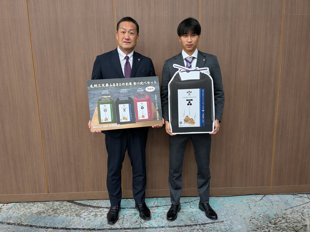 なお、今回サンフレッチェ広島に贈呈したお米セットは安芸高田市、三原市、北広島町のふるさと納税共通返礼品として開発されたもので、各市町のふるさと納税ポータルサイトで寄附を受け付けています。
