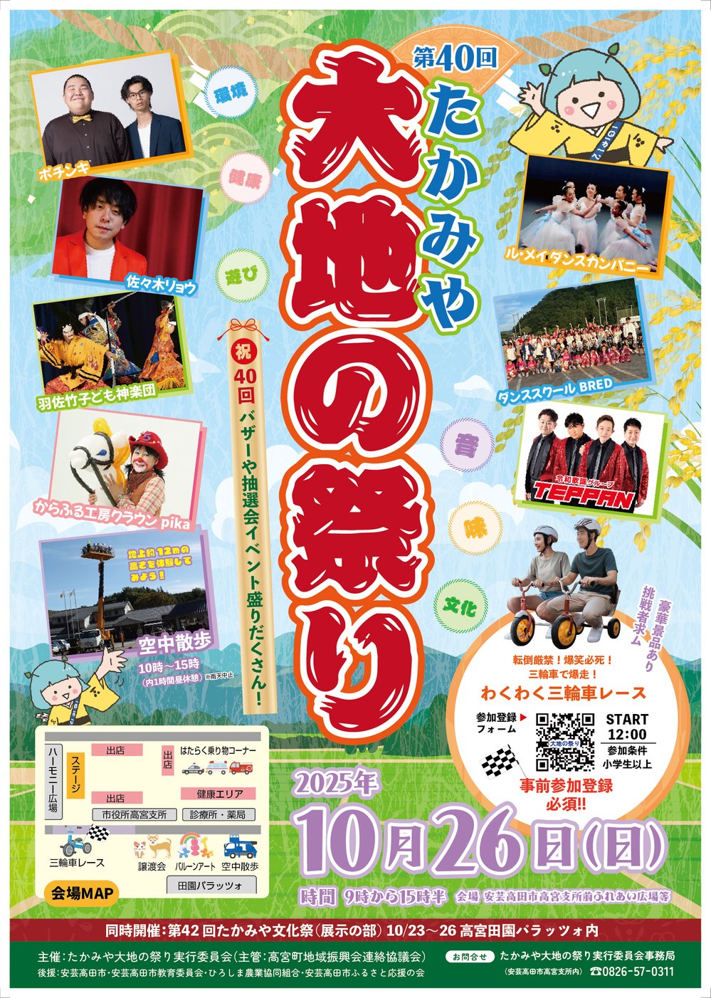 10月26日(日)に、「第40回たかみや大地の祭り」を、安芸高田市高宮町で開催します。